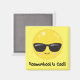 En kylmagnet med en stark gult som leker emoji med solskugga, "Homeschool is coola", skrivs på grund med svart teckensnitt. Bakgrunden är gult. Beställ idag! Clipart skapat av: PretypeGrafik Design (https://www.etsy.com/shop/Prettygrafikdesign)