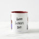Ett mugg med en rolig tecknad om pappor och hemläxor. Originalteckningar efter DB-Tecknader.