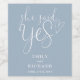 Denna eleganta dammiga blåa skrivstil "Hon sa ja" förlovningsfest dryckesetikett kan anpassas med alla era namn och speciella datum. Designad av Thisisnotme©