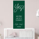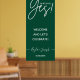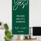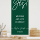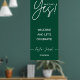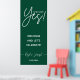Enkel kalligrafisk skylt för förlovningsfest med texten 'Hon sa ja!'. Olika bakgrundsfärger tillgängliga. Namn och datum för evenemanget kan redigeras.