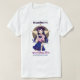 En anime-stil-flicka med flytande svart hår, rosa rosett band och ljusröd ögon smilt. Hon bär en rosa blus, en marin buk och en god kjol med lila detaljer. En beige stjärna bakom henne står i kontrast till den djärva bakgrunden till grönten, som förstärker den livliga, nostalgiska känslan.