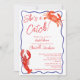 Hon är en Catch Blue och Red Coastal Inbjudningskort för möhippan - En nautisk och kustnära temad möhippa inbjudan med röda hummer och röda krabbor vattenfärgillustrationer mot stollig, hand plockade, blå bläckfisk ram. Med handskrivet teckensnitt och snyggt blockerad text i ljust rött. Perfekt för en Maine eller Nantucket Temed möhippa, fiske eller sjö temed möhippa brunch, skalmat, temad möhippa lunch eller strand och oceattemed möhippor eller en möhippa brunch för hummer. Firar bruden att vara med en inbjudan som skriker det är sommar! Kan beställas i utskrift eller som en omedelbar digital nedladdning och skicka den enkelt via text, e-post eller social-media.