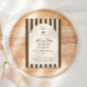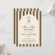 Födelseinbjudan med en handritad kaffemartiniglas och kaffebönor i kombination med elegant skrivstil och seriffer där din personliga information skrivs. Bakgrunden är bruna ränder på en ljus bakgrund. Kolla in vår butik för fler föremål från denna samling.