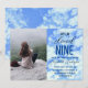 Hon är på moln nio! Inbjudan till bröllopsdusch med fluffiga vita moln mot en skarp blå himmel. Fotomall via Pixabay licensierad under CC0 och måste ersättas med ditt eget foto