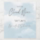 Hon är på molnet bröllopsfest vinetiketter, Pastell vattenfärg moln, grå modern skrift.