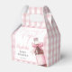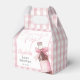 Dessa charmiga presentaskar till baby shower har en läskflaska med en söt rosa slinga och en rosa gingham bakgrund. Designad av Thisisnotme©