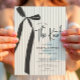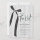 Förhöj din bröllopsfest med vår moderna grå och vita randiga inbjudan, designad för att imponera. Med en chic svart coquette-bandbåge, utstrålar denna inbjudan elegans medan den prickiga grå randiga bakgrunden tillför en touch av sofistikering. Perfekt utformad för att sätta tonen för din speciella dag, inbjuder den dina gäster att fira din kärlekshistoria med stil.