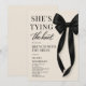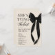 Elegant brunch med bruden-inbjudan med klassisk rosett-design och frasen hon knyter knuten. Skapad för brudar som vill ha en raffinerad, modern look för en avkopplad förbröllops-sammankomst. Perfekt för bridal brunchar, dagfirande och intima bröllopsevenemang. Fullständigt anpassningsbar text med en ren, tryckklar layout.