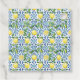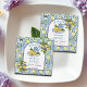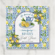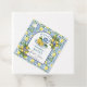 En elegant bröllsmdusdesign med blå kakelbakgrund och citroner.