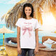 Vit t-shirt dekorerad med en rosa färgad rosett. Personliggör och lägg till ett namn.