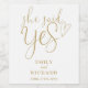 Denna eleganta etikett med texten "Hon sa ja" i guld för drycker på en bröllopsfest kan anpassas med era namn och det speciella datumet. Designad av Thisisnotme©