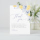 Ett fräscht och elegant tackkort med mjuka akvarellcitroner, dammiga blå blommor och graciös kalligrafi. Perfekt för att tacka gäster efter en sommar- eller medelhavsinspirerad bröllopsfest. Ren vit bakgrund för en tidlös och förfinad look.