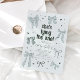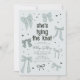 Coquette Blue bow themme inbjudningskort för möhippan kort med illustration av rosett band och hjärtan. I texten står det "hon är gifter sig".