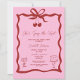 Fira bruden som ska vara med den här söta och snyggt inbjudningskort för möhippan! Med en lekfull rosa och röd körsbärsdesign är den här charmerande inbjudan försedd med en söt bog, en fin kaka och en fin cocktail som anger perfektens ton för en roligt- och elegant-händelse. Temat för körsbärsbäret fortsätter med ett valfritt tileerat körsbär mönster på baksidan, vilket tillför en liten bit stollig. Fullständigt anpassade med din händelseinformation är den här inbjudan perfekt för brider som kärlek är en popo av fruktig roligt och femininimilder. Oavsett om du är värd för en trädgård party, en brunch eller en cocktail-soirée, så gör den här designen firande extra speciell. Ange tonen för en minnesvärd samling och imponera på gästerna med denna unika design. Ordna nu och få redo att duscha bruden med kärlek!
