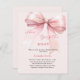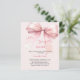 En mjuk bakgrund för elegant rosa, dekorerad med en rosa färgad båge. Anpassa och lägg till information om namn och party. Hon är gifter sig. 1 lakan = 1 inbjudan tryckt kant till kant.