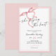 Elegantens kalligrafi av mjuk rosa "hon är gifter sig" inbjudningskort för möhippan med en rosa av vattenfärgen.