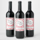 Hon Gifter sig Personlig Möhippa Vin-etikett. En röd allt-över-mönster-bakgrund och "Hennes gifter sig"-fras i elegantens kalligrafi. Anpassa mallen med din titel och ditt datum. © Kimbelled, LLC
