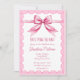 Hon gifter sig en ändringsbar mall för Rosa-bukvett för inbjudningskort för möhippan direkt digital nedladdning av rosa vintage snöre gräns och en armbåge