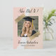 Fira din examen med stil med denna moderna examensinbjudan som har en mjuk rosa bakgrund och trendiga guldfärgade tejpaccents. Den eleganta handskrivna rubriken ”Hon klarade det!” passar vackert ihop med den rena serif-typografin och skapar en chic, redaktionell look som är perfekt för firande av avgångsklasser 2026.