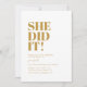 Önska student lycka till med detta enkla och elegant studenten inbjudan. Inbjudan innehåller en elegant med en mjuk, vit bakgrund. I mitten är party-detaljerna vackert blockerade i en guld-text som utesluter en sofistikerad luft. Wow gäster med din inbjudan till studentfest med den här enkla designen. Bakgrund färg och text kan redigeras.