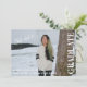 Fetstig text STUDENT uppåt med studenter namn, studenten och high school namn under ditt favoritfoto. Hon gjorde det! är skrivet i ett elegant i hörnet. Anpassa med ytterligare information på baksidan.