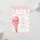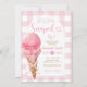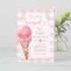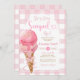 Gingham Pastel.. Hon har blivit uppstoppad ice Cream Rosa Bow Inbjudningskort för möhippan