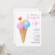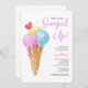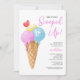 Söt, hon har fått en skop med sig! inbjudningskort för möhippan med en våffelkon, tre skogar av glass och ett hjärta. Perfekt för en möhippa av glass party. Se samordna saker i vår butik, Enchanted Finch.