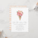 En glasgräddformad blommigt med vattenfärg på en vit bakgrund med grått-skript med målande typsnitt där det står "Hon har blivit uppskovad!" mitt i inbjudan. Den omvända sidan har en vattenfärgsbakgrund i rand för att samordna med skriptteckensnittet och blommigtens accenter. Perfektens val för en sommar- eller vår-möhippa!
