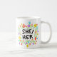 HON/ HER Pronouns Regnbåge Blommigt Utandningsluft Kaffemugg
