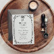 Gratulera till briden att bli med vår "Hon hittade hennes Boo" Möhippa Stationery Collection, en perfekt blandning av Halloween stollig och vintage elegance. Den här charmerande inbjudan tar upp själva kärnan i en festlig och spännande möhippa som är designad för att glädja gästerna med dess unika tema och konstnärliga fläkt. Den vismliga handritade ram lägger en lekfull och konstnärlig beröring till ditt kontorsmaterial. Det är vackert att ge information om din möhippa, skapa ett inbjudande och snyggt estetiskt. Längst upp på ram sitter en charmerande svart båge, som ger en aning elegans och sofistikering till designen. Denna enkla men slående inslag kompletterar perfekt Halloween-temat och skapar din inbjudan till ett fristående biet. Samlingen innehåller ett urval av typsnitt som inspirerats av vintage och som lägger till en klassisk känsla utan tidpunkter i dina meddelanden. Elegantens typografi står i skarp kontrast till det krångliga ram som bjuder in gäster med värme och stil.