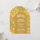 En roligt inbjudningskort för möhippan med ett sött, guldhonungstema. Hittade Mitt honungstema för Möhippa med blommönstret guld och orange - perfekt för en möhippa eller förlovningsfest. Inkluderar en roligt mönster av blommor och kurvor i guld och bruna nyanser.