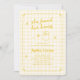 Fira de kommande nyheterna om din favoritbrud som ska vara i stil med vårt krångliga och vismliga "Hon hittade sin honung" inbjudningskort för möhippa! Den här inbjudan innehåller handritade illustrationer av ett bi och en honungsburk med söta blommor i en roligt och ett lekfullt stil med en lugg ram som omger det, tillsammans med ett avslappnad, handskrivet teckensnitt som perfekt fångar tillfälle upphetsning och glädje. Inbjudan till kom i ett program för honung i roligt färg på en gult med mjukt smör gingham under mönster.