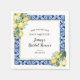 Den här möhippan napkin är designad för att koordinera med Jenny's Lemon Collection och har gult citronbuketter som dekorerar en fyrkantig blå bricka och guld ram. Hon hittade sin huvudsöm och började möhippan. Namn och möhippa för bruden skrivs i ett modernt och trendig skript. Datumet fyller i texten. All text är redigerbar.