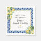 Den här möhippan brunch och bubbelnapkin är designad för att koordinera med Jenny's Lemon Collection och har gult citronbuketter som dekorerar en fyrkantig blå bricka och guld ram. Hon hittade sin huvudsöm och började möhippan. Brons namn och brunch och bubblande följer med ett modernt och trendig skript. Datumet fyller i texten. All text är redigerbar.