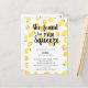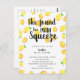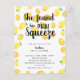 Budget Citron bröllopsdusch med text som säger "Hon hittade sin main squeeze" bröllopsinbjudan.
