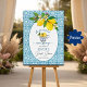 En Möhippa av elegant med blå bakgrund och kopp av citroner.