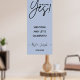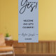 Enkel kalligrafisk Förlovningsfestskylt med 'Hon sa Ja!' -bokstäver. Olika bakgrundsfärgalternativ tillgängliga: Rosenskär, Salvia, Dammt rosa, Dammig blå. Namn och datum för evenemanget kan redigeras.