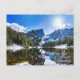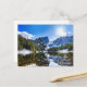 Vacker vykort med en fantastisk bergsutsikt med soluppgångsfotografi som speglas i en kristallklar bergssjö. Typografiscitat i vitt, "Hon kommer att flytta berg".