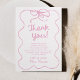 Detta är ett Hon Knutar Knuten Vit Rosa Whimsical Handritad Bow Bröllopsfest Tack Kort!