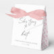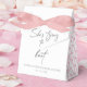 Lägg till en stilig touch till din fest med "Hon knyter bågen" Chic lint båge Bröllopsdusch Anpassningsbara presentlådor! Med en elegant lint båge design och redigerbar text är dessa presentlådor det perfekta sättet att tacka gästerna med en personlig och chic souvenir.