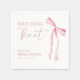 Tillsätt en touch av elegans till din fest med dessa "She's Tying the Knot" bröllopsdusch-servetter! Med en rosa vattenfärg coquette-slöja och elegant typsnitt utstrålar denna design feminin charm och sofistikation. Perfekt för en slöj-tematisk dusch, dessa servetter förhöjer din dukning med en stilren och romantisk touch. Personalisera med brudens namn och datum för duschen för att skapa en fest lika vacker som hon är!