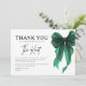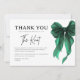Uttryck din tacksamhet i tidlös stil med det här She’s Tying The Knot Gröna Båge Bröllopsfest Tacksamt-kortet. Designat med ett chic grönt bågmotiv och ren, modern typografi är detta kort den perfekta avslutande detaljen för att tacka gäster efter en bröllopsfest, förlovningsfirande eller bröllopshelg.