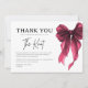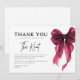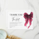 Uttryck din tacksamhet med tidlös stil med detta She's Tying The Knot röda bröllopspresentkort med tacksamhetsmeddelande. Designat med ett snyggt rött rosettmotiv och ren, modern typografi är detta kort den perfekta avslutande detaljen för att tacka gäster efter en bröllopsfest, förlovningsfirande eller bröllopshelg.