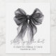 Eleganta etiketter för vinflaskor till din bröllopsfest med en svart coquettebåge i akvarell, "hon knyter knuten" presenterad i ett chic script, samt brudens namn och datumet för festen i modern enkel bokstavsstil.