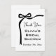 En modern svart-vit Hon knyter knuten Svart båge kant Bröllopsfest Tack-kort. Mallar som gör det enkelt att ändra texten: teckensnitt och färger—med en söt båge och script-typografi.