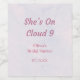 På molnet Bröllopsduschtema - Hon ligger på molnet Pastell Drömmig Bröllopsdusch Vinsetikett med stjärnig bakgrund.