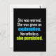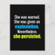 Hon varnades. Hon fick en förklaring. Trots detta stod hon fast. Ett kraftfullt citat till stöd för Elizabeth Warren och hennes ansträngningar att låta demokrater göra sina röster hörda i senaten. Sluta aldrig tro på framsteg.