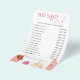 🍦 Möhippor upp skrubben med "Han sa, hon sa". ✨ tillför en sprinkl av roligt till möhippans festligheter med vårt spel "Han sa, hon sa", som är helt designat för att komplettera den visuella charmen med temat "Hon har blivit uppskovad". Detta vackra spel utlovar skratt, vänskapligt sinne och underhållning för alla inblandade. 👫 Kärlek Story Banter: gäster från Inbjudan som är under parets färd med detta lekfulla och engagerande spel. "Han sa, hon sa" ger en trevlig twist som gör det möjligt för deltagarna att gissa vem som sa vad, och som ger en trevlig glimt in i kärlek-historien som ledde till att den blåsande bruden "slog upp". 🎀 Whimsical Design Harmony: Matchad till den söta estetiken av "Hon har fått en skotsk topp", har spelkorten bra glassillustrationer, vattenfärgsnyp och lekfulla pasteller. Utformningen integreras sömlöst med det övergripande temat och skapar en sammanhängande och charmerande atmosfär för möhippan. 🍨 "Sweet Scoops of Revelations": Varje kort är en härlig grogrund för avslöjanden! Testa gästernas kunskaper om paret med humoristiska och hjärtslitande citat och utmana dem att minnas vem som sa vad i olika scenarier. Medan skratt fyller rummet och banden stärks genom gemensamma berättelser. 🌸 Anpassade Scoops: Anpassa spelet för att fånga parets unika väsen. Skräddarsy frågorna för att spegla bridens och gruppens personligheter och se till att varje omgång av "Han sa, hon sa" är en trevlig återspegling av deras kärlek-historia. 🌈 "Soop Up the Memories": Inte bara ett spel utan också en minnesproducent! Som gäster i den livliga förlovaden blir spelet "Han sa, hon sa" en omhuldad del av möhippan, skapar varaktiga minnen och fyller rummet med varma skratt. 🎉 här är till Kärlek, Skratt och Möhippa Roligt! Upptäck glädjen med vår "Han sa, hon sa"-Möhippa Game som utan problem integreras med temat "Hon har blivit uppläxad". Beställ dina spelkort nu och låt skratt och kärlek flöda fritt vid detta glassinspirerade firande! 🍧 👰 💕