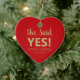 Förlovningens meddelande faux guld och röd söt anpassningsbar fototext jul Keramic Ornament. Anpassadet sa ja! Du kan anpassa texten och fotot och göra den till en egen