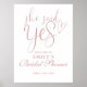 Denna eleganta damrosa rosa skrivstil "Hon sa ja" bröllopsfest välkomstskylt kan anpassas med ditt namn och speciella datum. Designad av Thisisnotme©
